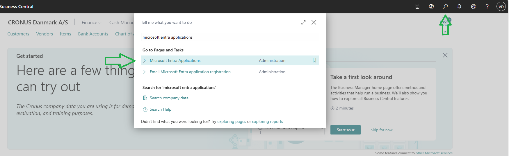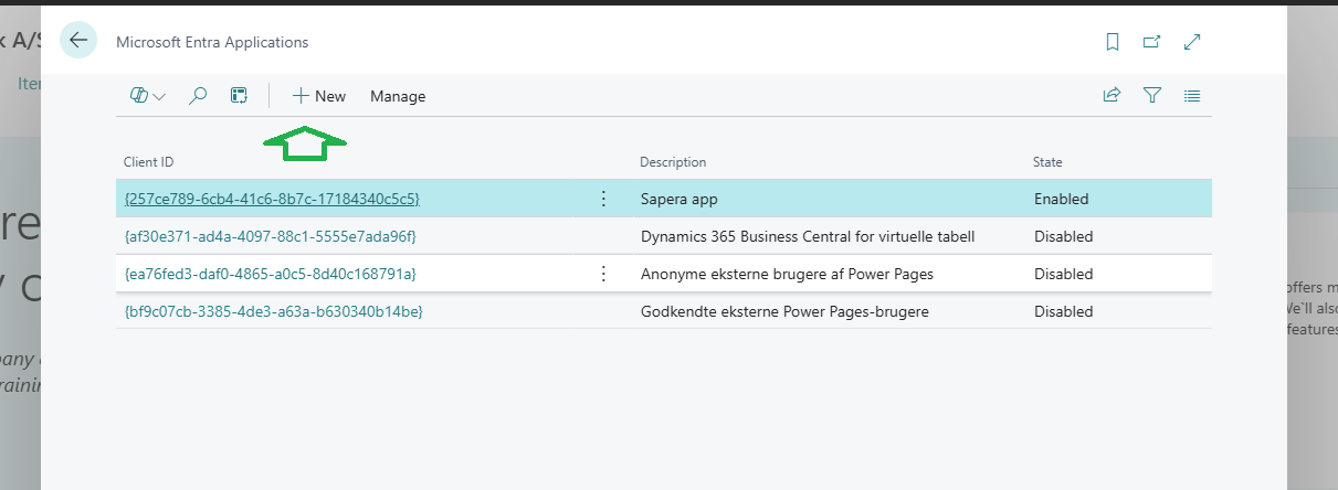 I Microsoft Business Central skal [Microsoft Entra Applications] findes, og listen åbnes.