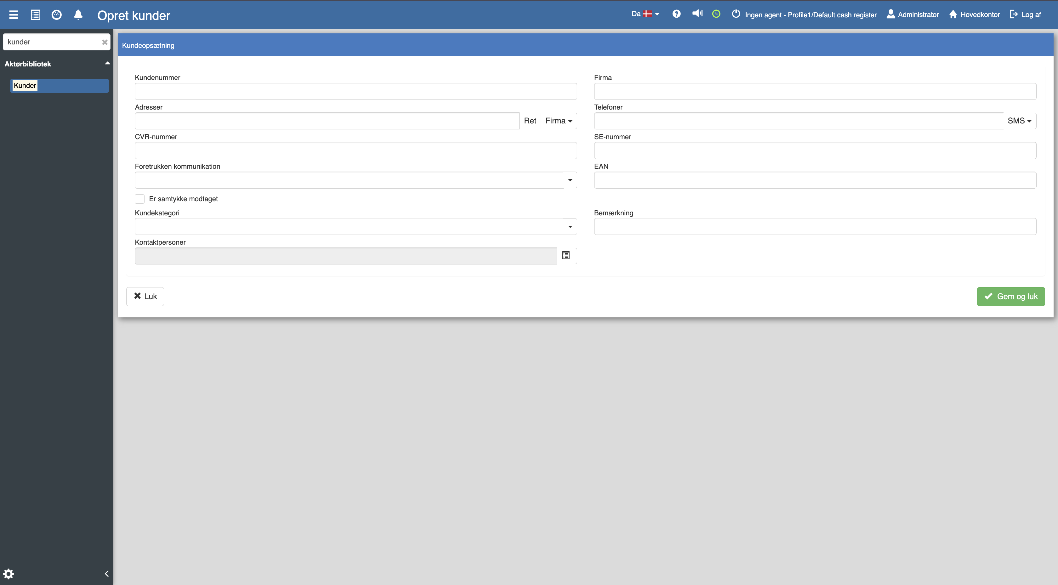 Udfyld felterne og husk derefter at trykke “Gem og luk”.