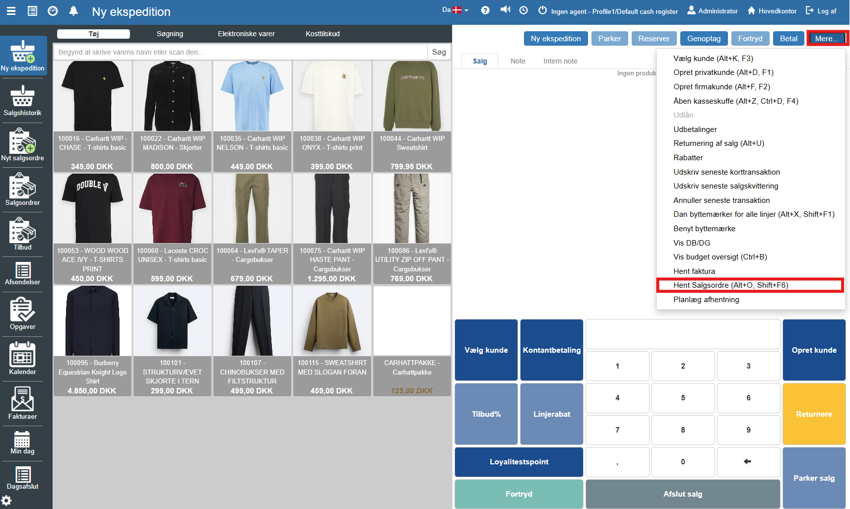 Hvis en ordre er oprettet i et andet modul (f.eks. via administrationen eller en webshop), kan den hentes frem i kassen for at afslutte ekspeditionen.
