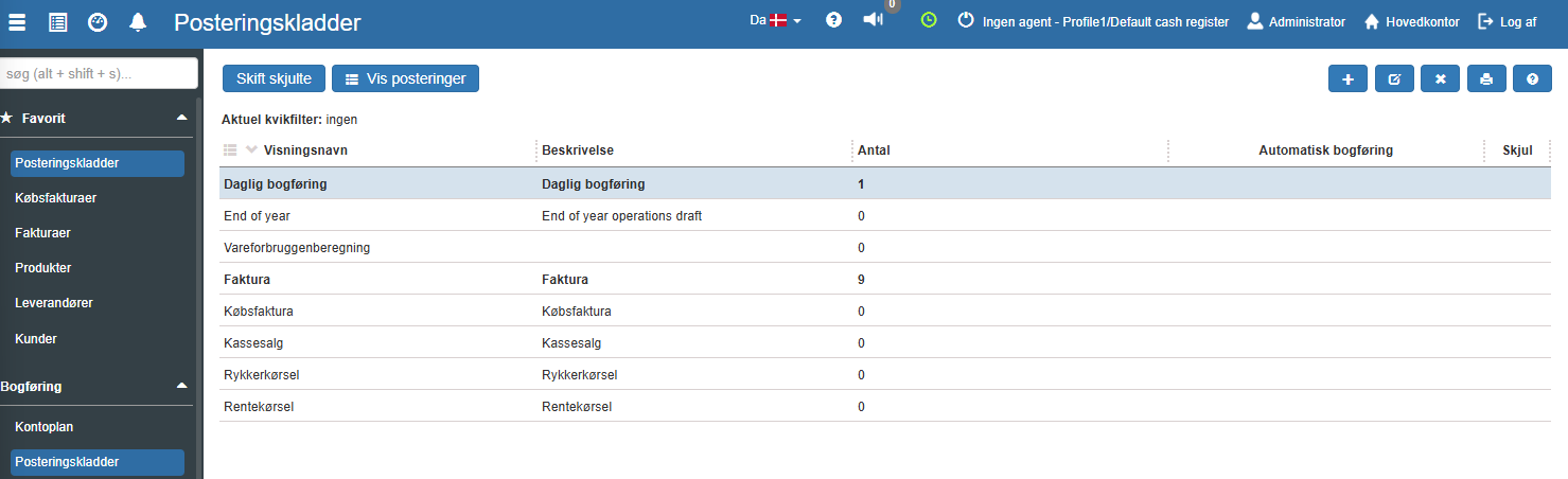 1. Fra Shop Manager tilgås "Bogføring" → "Posteringskladder".