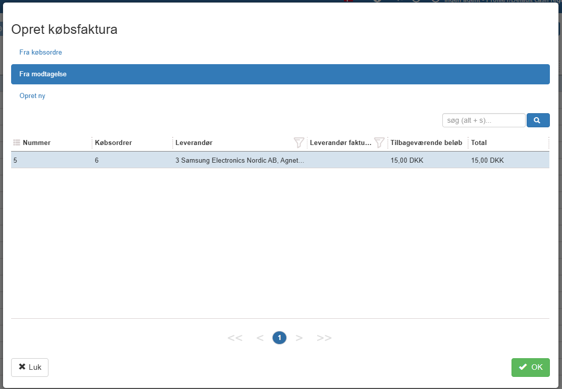 3. Systemet viser nu en liste over de varemodtagelser, som endnu ikke er blevet faktureret.