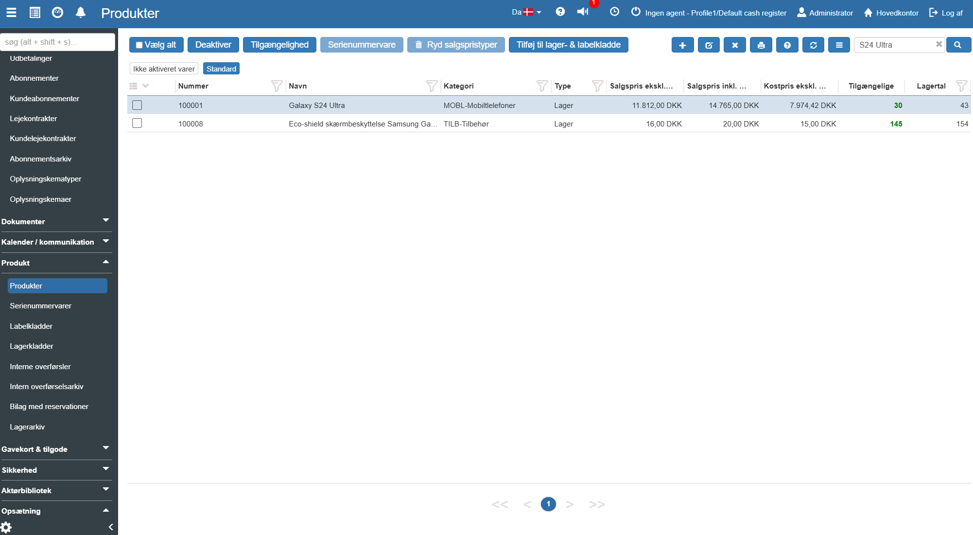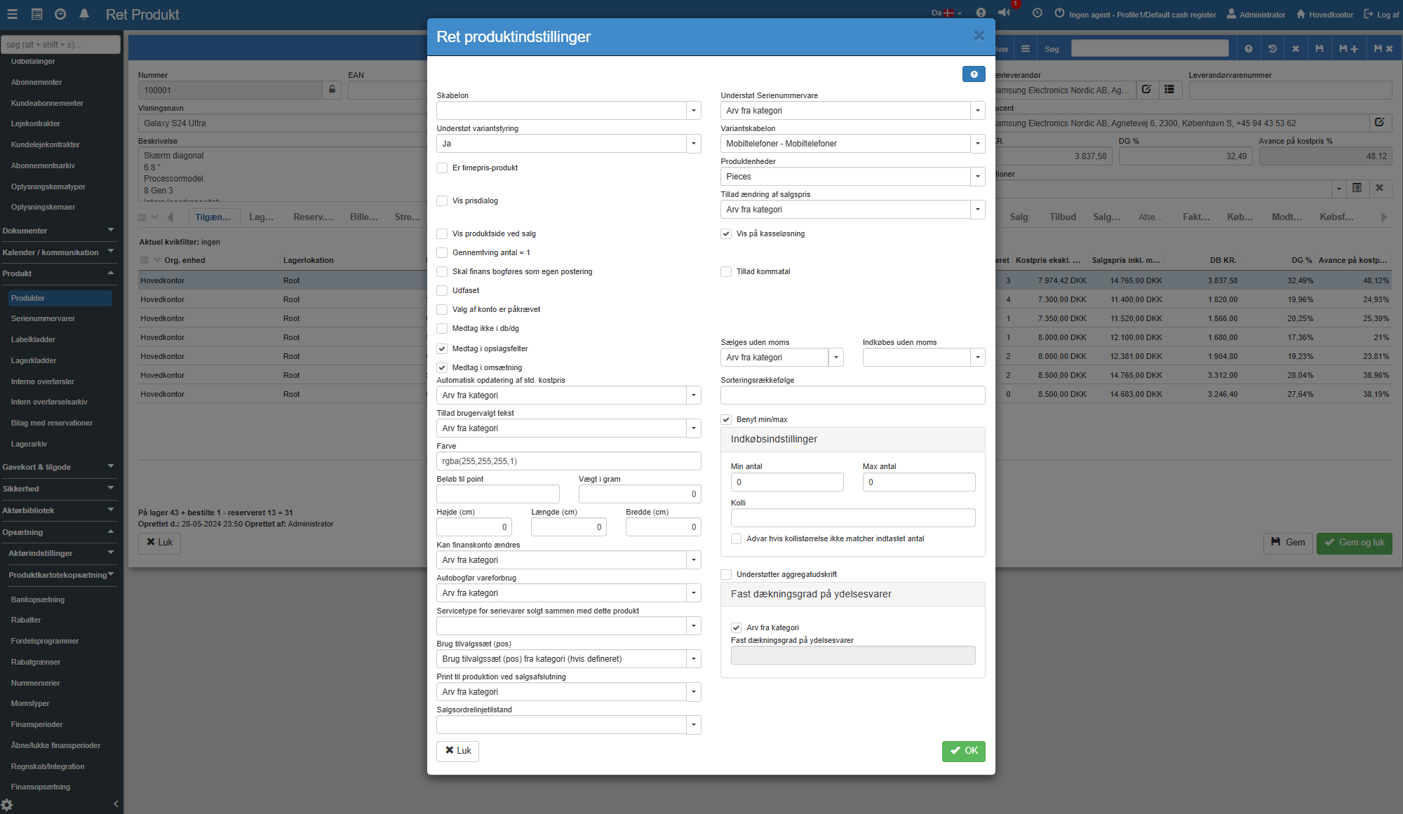 Vis på kasseløsning: Bestemmer, om produktet kan sælges i den fysiske butik via kassesystemet, eller kun via salgsordrer og fakturaer.