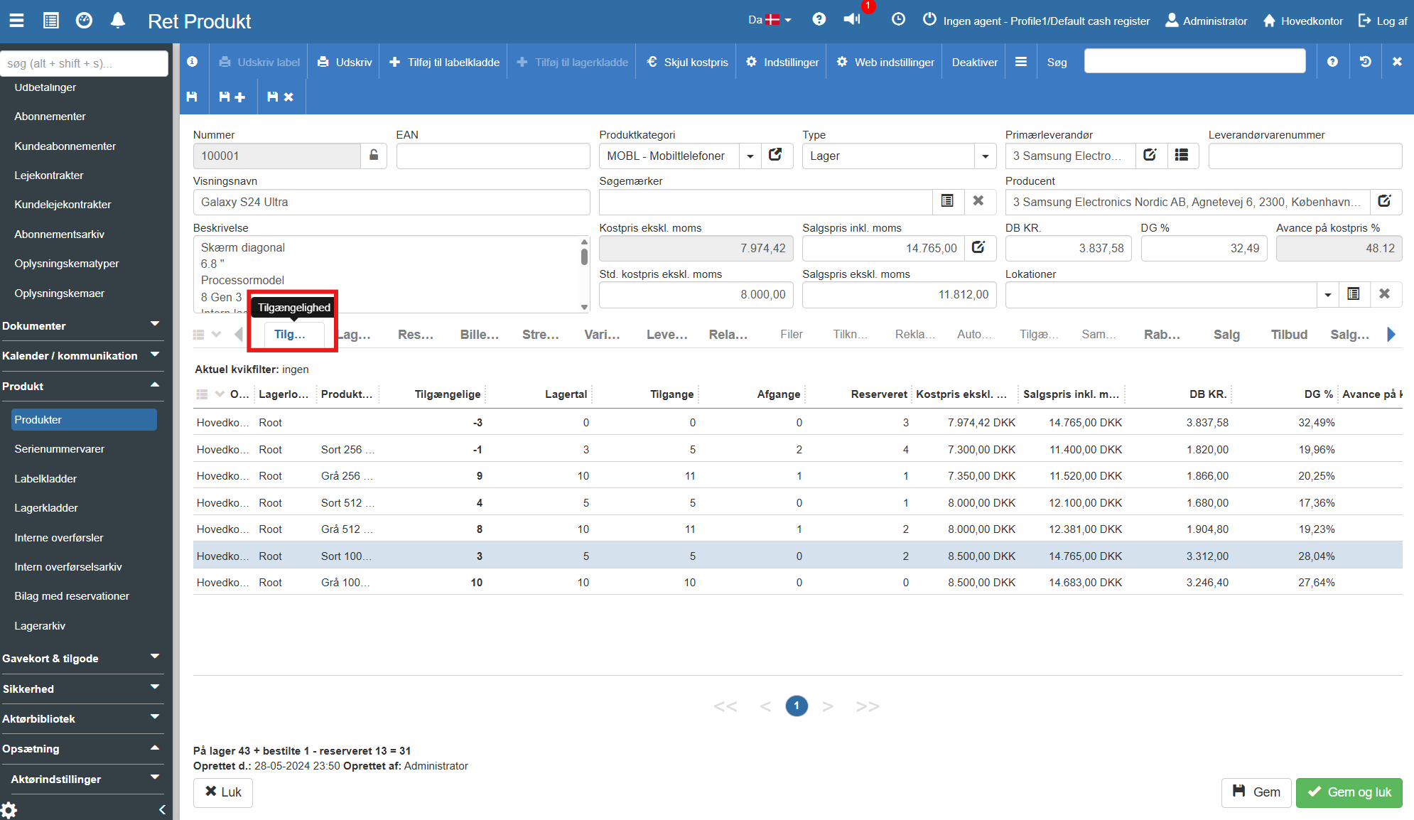 Vil du dykke dybere ned i historikken og se præcis, hvordan dit lagertal for varen er skruet sammen (samtidig med optælling af eventuelle varianter), skal du bruge tilgængelighedsoversigten.