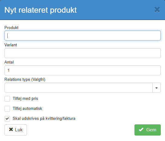 For at oprette et relaterede produkt skal du gøre følgende: