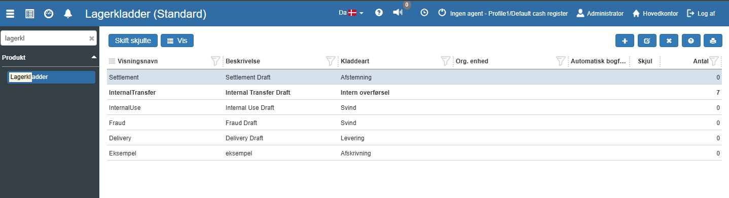 1. Vælg Shop Manager -> Lagerkladder -> Vis (posteringer i lagerkladden) -> Mere -> Tilføj