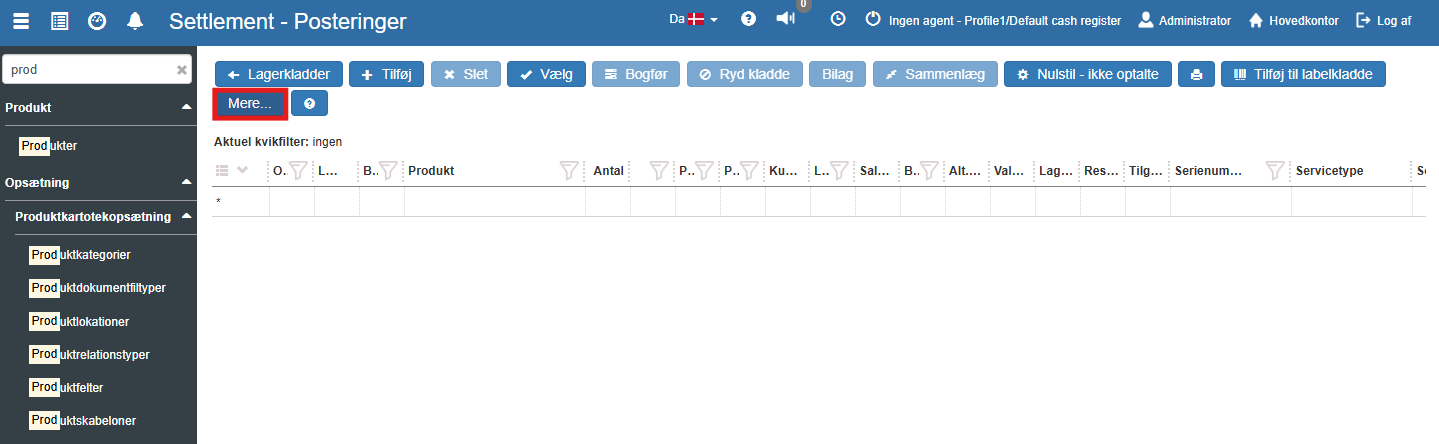 "Shop Manger" -> "Produkt" -> "Lagerkladder" -> " Vis" -> "Mere..."