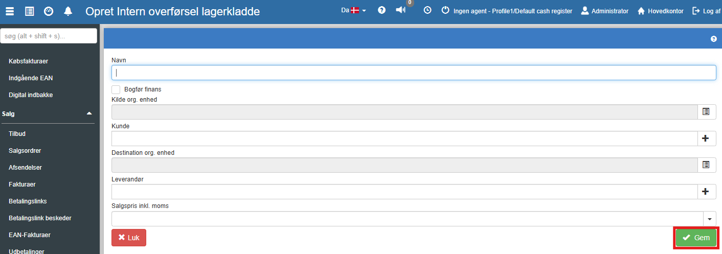 En kladde for intern overførsel bruges til at registrere og dokumentere overførsler af varer mellem forskellige organisatoriske enheder i Sapera, eksempelvis mellem to butikker eller lagerlokationer. Kladderne gør det muligt at følge varebevægelsen internt i organisationen og sikrer, at beholdninger opdateres korrekt begge steder.
