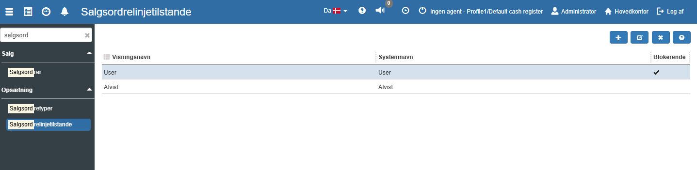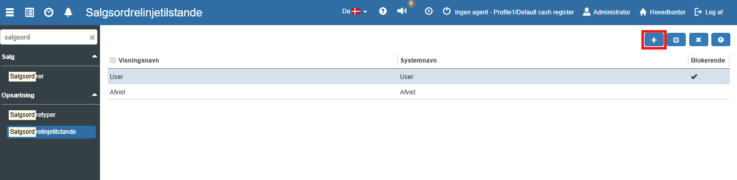 3. Du er nu på "Salgsordrelinjetilstande"-fanen, hvor en oversigt over dine Salgsordrelinjetilstande i Sapera er synlige.
